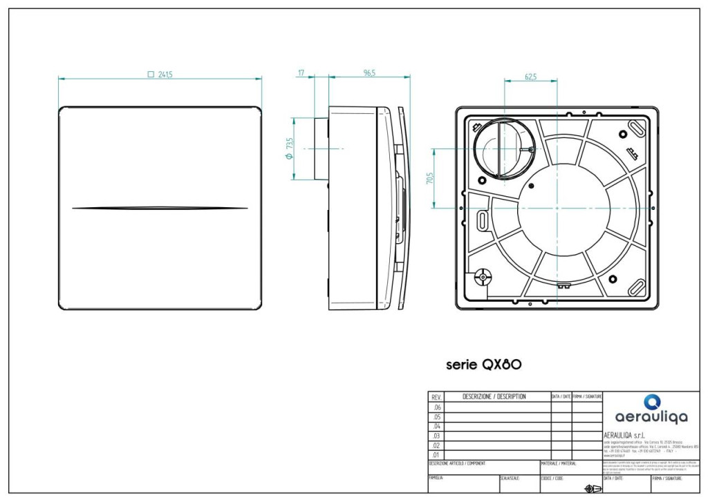 Az Aerauliqa QX szellőztető ventilátorok formatervezett, könnyen levehető és tisztítható előlappal, valamint a ventilátort védő, szintén tisztítható szűrővel rendelkeznek. A süllyesztett kialakításnak köszönhetően, csekély mértékű a falsíktól való kiállásuk. Gipszkatonfalazatba való süllyesztés az Aerauliqa KT-PLASTER QX, opcionálisan rendelhető tartozék felhasználásával lehetséges.