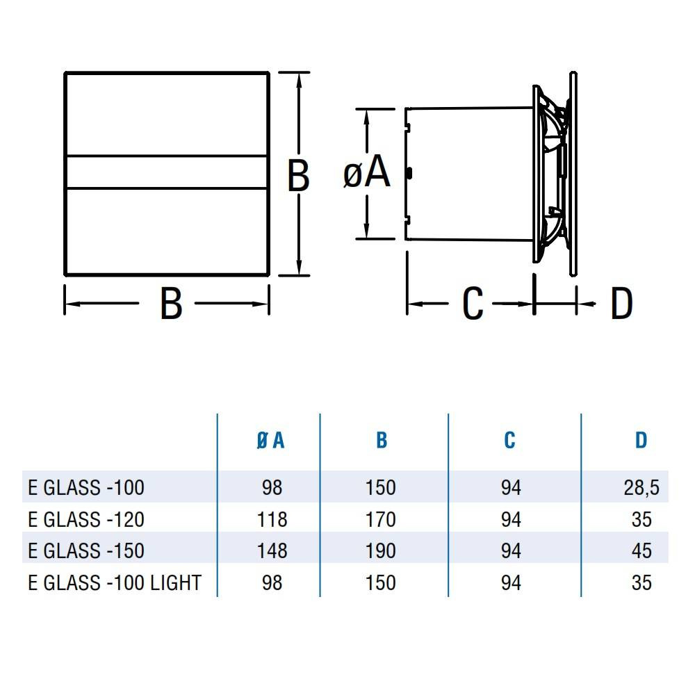 A Cata E-GLASS szellőztető ventilátorok formatervezett kialakításának nem csak esztétikai, hanem áramlástechnikai szerepe is van. A hasonló teljesítményű, hagyományos kialakítással rendelkező társaihoz képest alacsonyabb zajszint jellemzi. Fürdőszobák, mellékhelyiségek, háztartási helyiségek szellőztetésére tervezték, az elhasználódott levegő közvetlen faláttörésen vagy rövid csőrendszeren keresztül történő kivezetésére. A ventilátor üzemeltethető a helyiség lámpakapcsolójáról vagy a ventilátor számára külön elhelyezett kapcsolóról egyaránt.