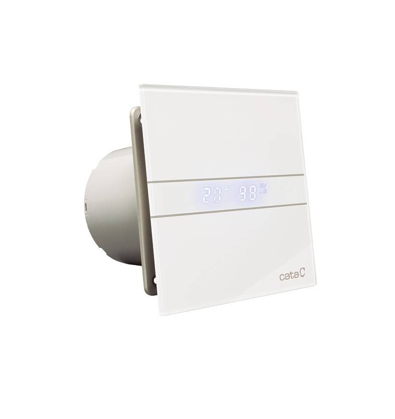 Cata E-100MTH ventilátor metakrilát előlappal, utószellőztető és páraérzékelő funkcióval, fehér