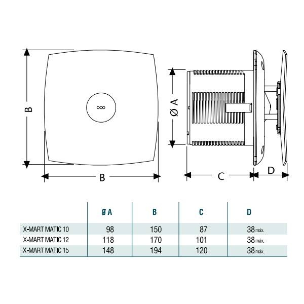 A Cata X-MART MATIC típusú szellőztető ventilátorok formatervezett kialakításának nem csak esztétikai, hanem áramlástechnikai szerepe is van. A hasonló teljesítményű, hagyományos kialakítással rendelkező társaihoz képest alacsonyabb zajszint jellemzi. Fürdőszobák, mellékhelyiségek, háztartási helyiségek szellőztetésére tervezték, az elhasználódott levegő közvetlen faláttörésen vagy rövid csőrendszeren keresztül történő kivezetésére. A ventilátor üzemeltethető a helyiség lámpakapcsolójáról vagy a ventilátor számára külön elhelyezett kapcsolóról egyaránt.