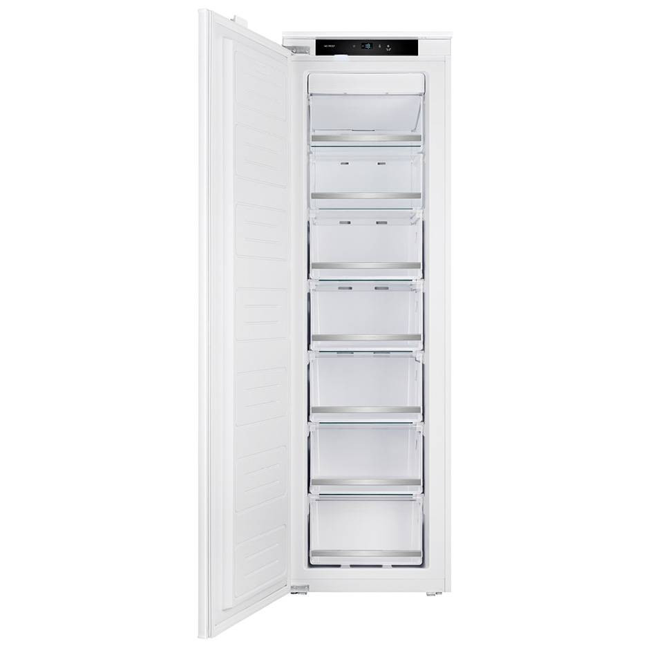 Beépíthető fagyasztószekrény NO-FROST technológiával, 178 cm magas, 200 literes fagyasztó, elektronikus hőmérséklet, 7 db fagyasztó fiók, fogyasztás: 231 kWh/év, fagyasztó kapacitás: 9 Kg/24 óra, zajszint: 41 dB(A), megfordítható ajtónyitás