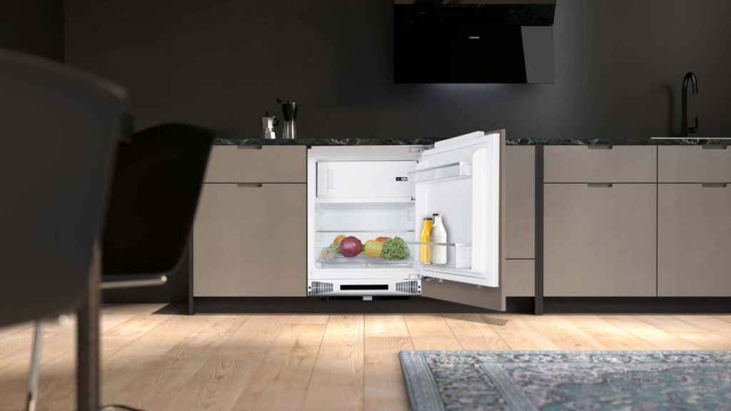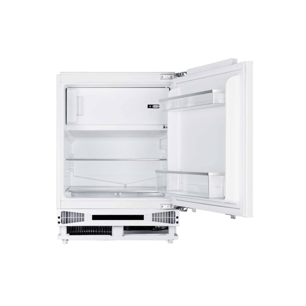 pult alá építhető hűtőszekrény belső fagyasztóval, LED világítás, 111 literes, 95 literes normál hűtőrész, 16 literes fagyasztó, elektronikus hőmérséklet szabályozás, 1 db biztonsági üvegpolc, 2 db polc az ajtón, 1 db zöldségtartó fiók, belső fagyasztórész nyitható ajtóval, nyitott ajtó riasztás, fogyasztás: 147 kWh/év, fagyasztó kapacitás: 2,6 Kg/24 óra, zajszint: 40 dB(A), megfordítható ajtónyitás