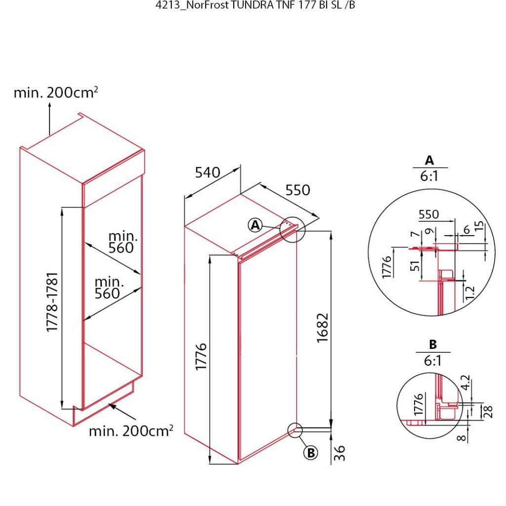 NODOR - Beépíthető hűtőszekrény NorFrost TNF-177 BI SL + Ajándék Hűtőtáska